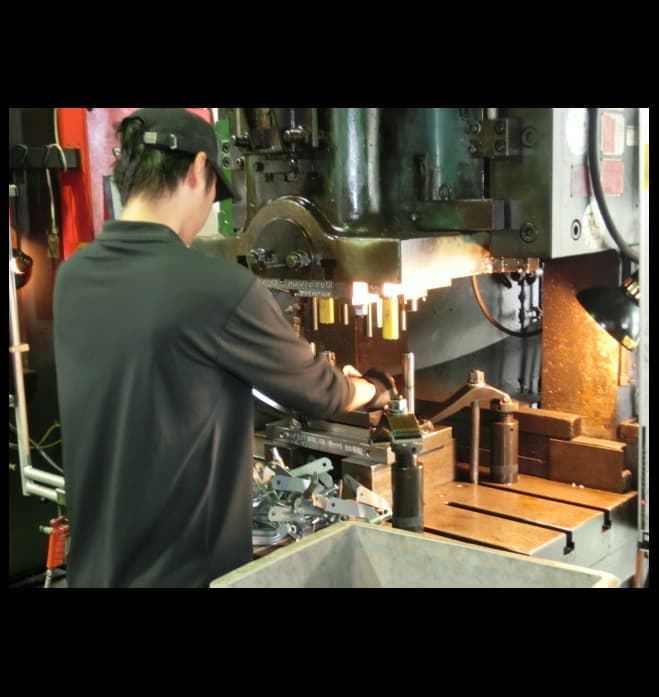 プレス量産加工は45トンから200トンまで対応可能です。単発から順送まで幅広く対応致します。
